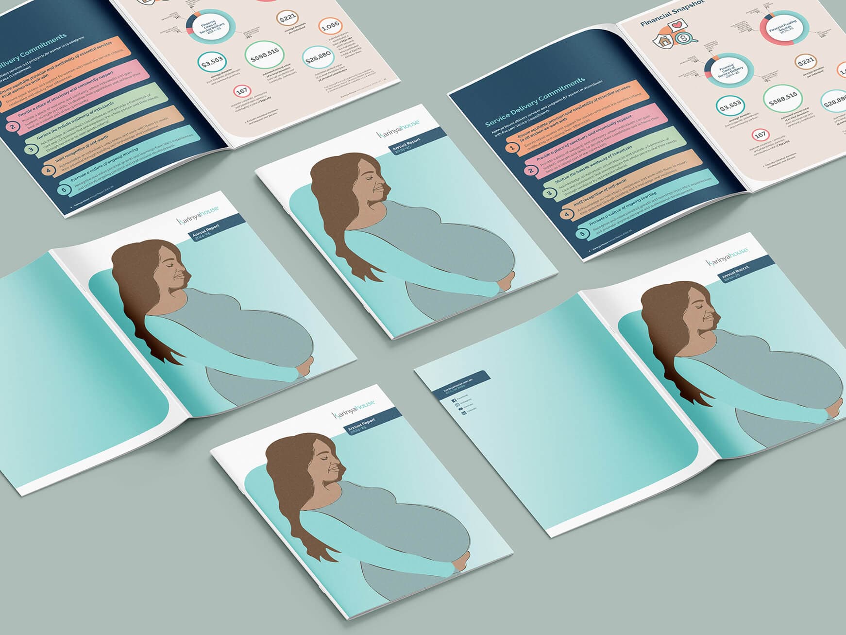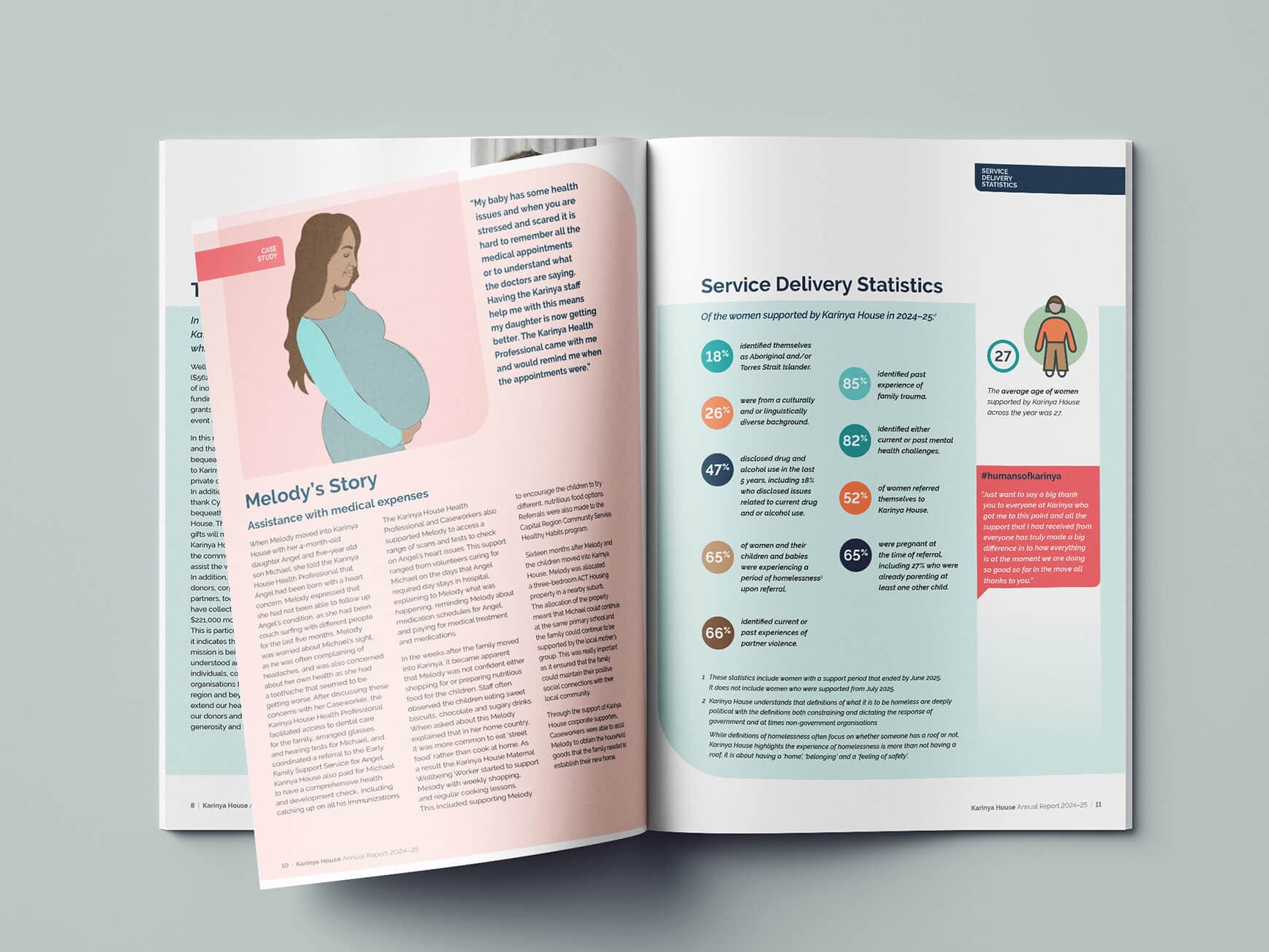 Since 2018 papermonkey has partnered with Karinya House to design and layout their annual report under an ongoing pro bono arrangement.